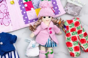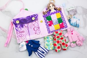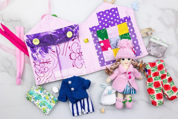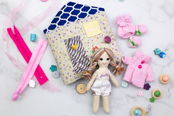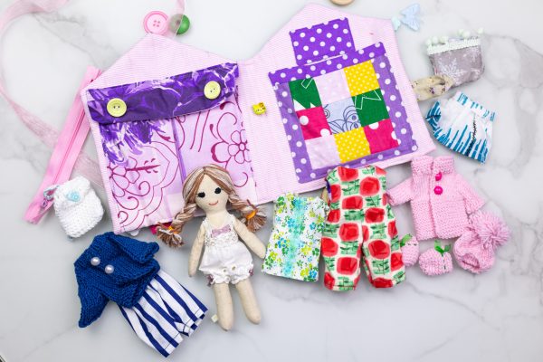 Ar pasiruošę mažosios stilistės žaidimams? Ši rankų darbo lavinamoji mini knyga kviečia į lėlės kambarėlį, kuriame laukia 10 mielų, rankomis pasiūtų rūbelių, megzta kuprinytė, vaizduotė ir begalė istorijų! Suknelės, megztukas, kepurytė, kelnytės – viskas pasiūta su meile ir švelnumu, kad būtų smagu kurti vis naujus derinius. Vaikas gali aprengti lėlę pagal metų laiką, nuotaiką ar fantaziją ir taip: